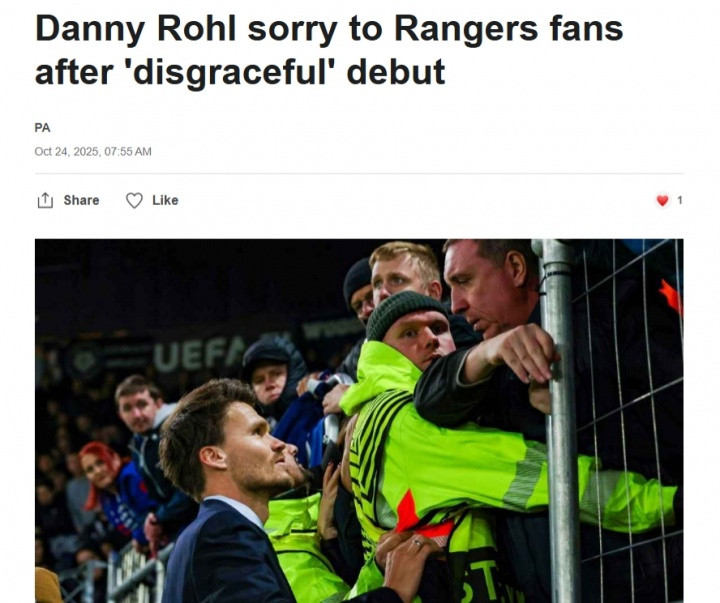 罗尔本周刚被任命为流浪者新帅,周中就遭逢惨败,赛后他走向场边的远征球迷,迎面向他们讲明并谈歉。