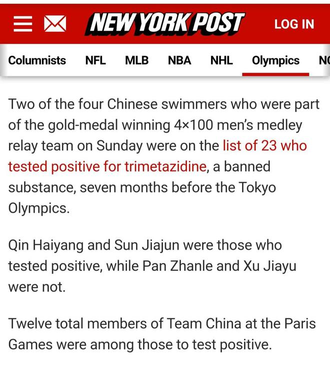 点击输入图片描写(最多30字)是以,当好意思国队在这个式样中输给了中国拍浮队后,好意思国媒体额外不肯定。于是,非难曲解他们常用的下作妙技就再次出现了。好意思国《纽约邮报》在中国队夺冠后就开启了曲解款式:“在赢得4×100男人搀杂泳金牌的四名中国拍浮清爽员中,有两东说念主在东京奥运会前7个月的阳性23东说念主名单上。覃海洋和孙家俊检测呈阳性,惟有潘展乐和徐嘉余检测呈阴性。参预巴黎奥运会的中国队,共有12名成员检测呈阳性。”