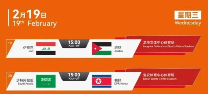 在 B 组小组赛的终末一轮赛事里,约旦队会与伊拉克队伸开对决,与此同期,朝鲜队将迎来与沙特阿拉伯队的较量。